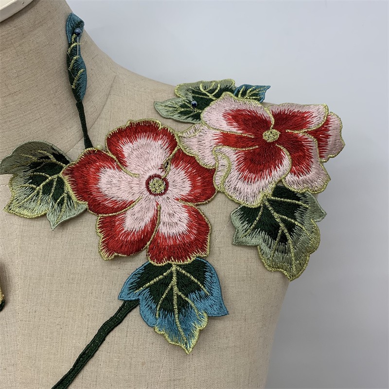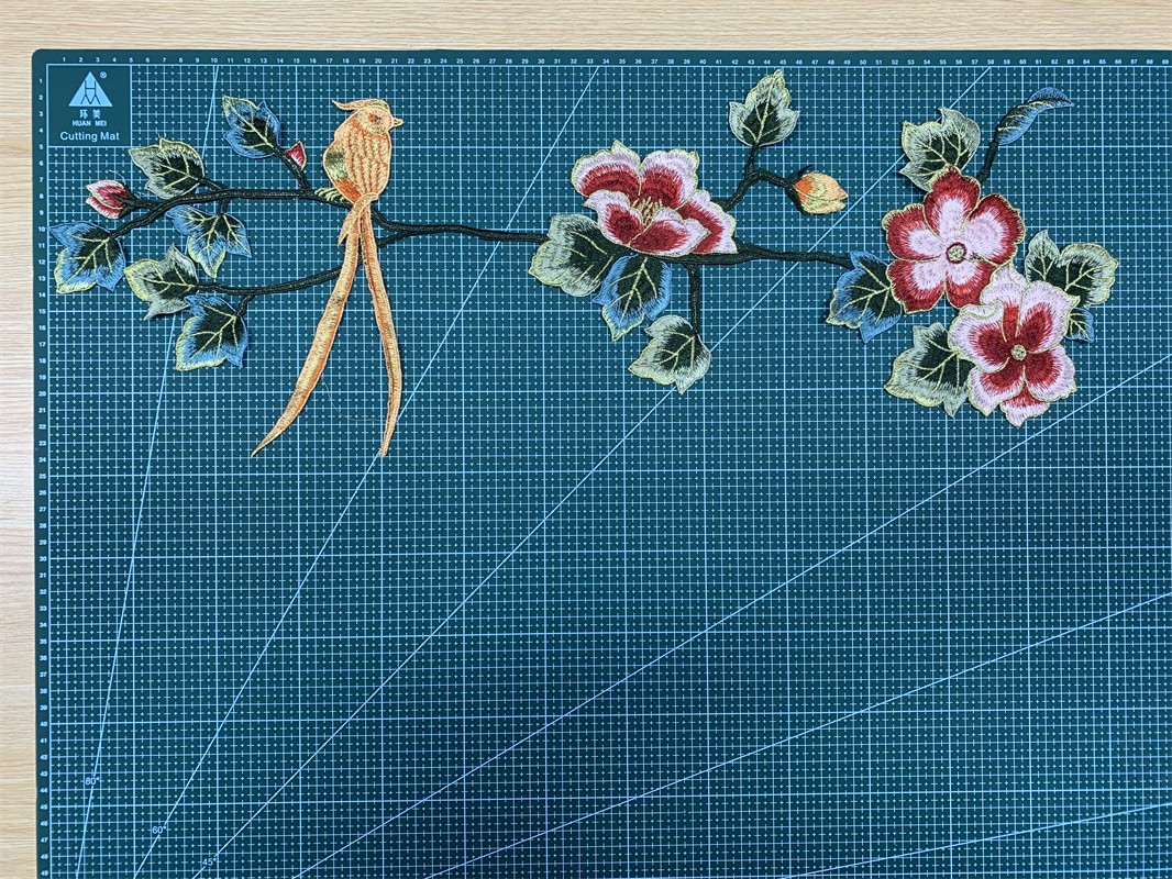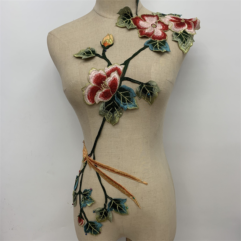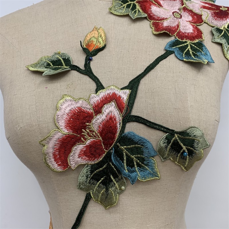 New Chinese feng shui soluble embroidery cloth with cheongsam and peony applique patch embroidery