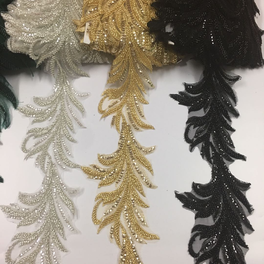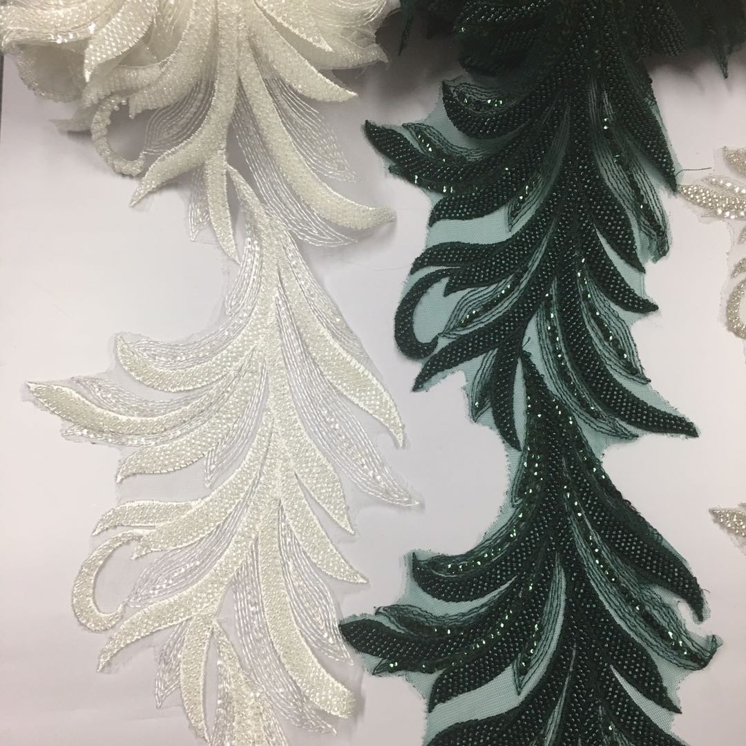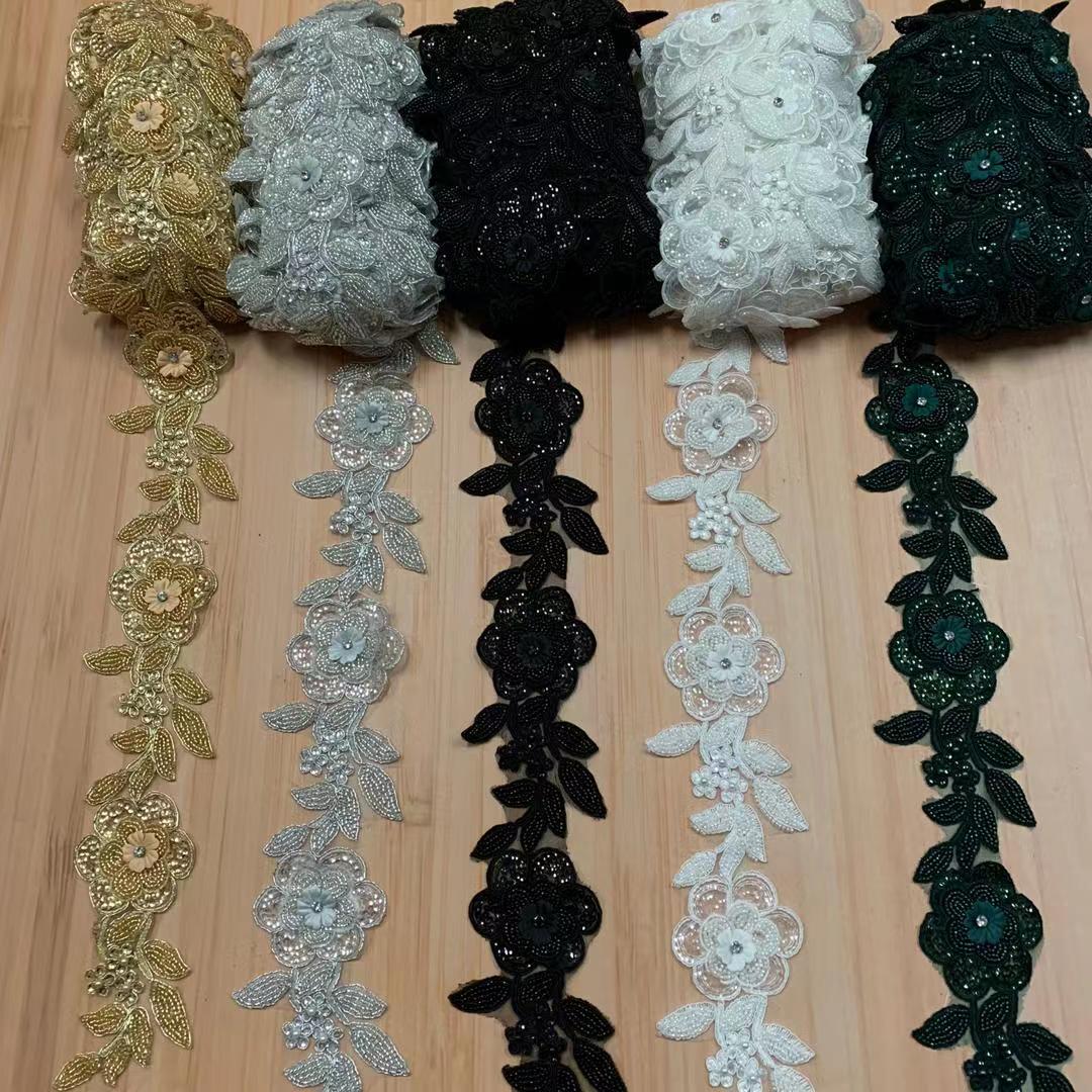 Polyester mesh bottom black and white bead embroidery Heavy industry corsage beads handmade DIY wedding dress lace accessories