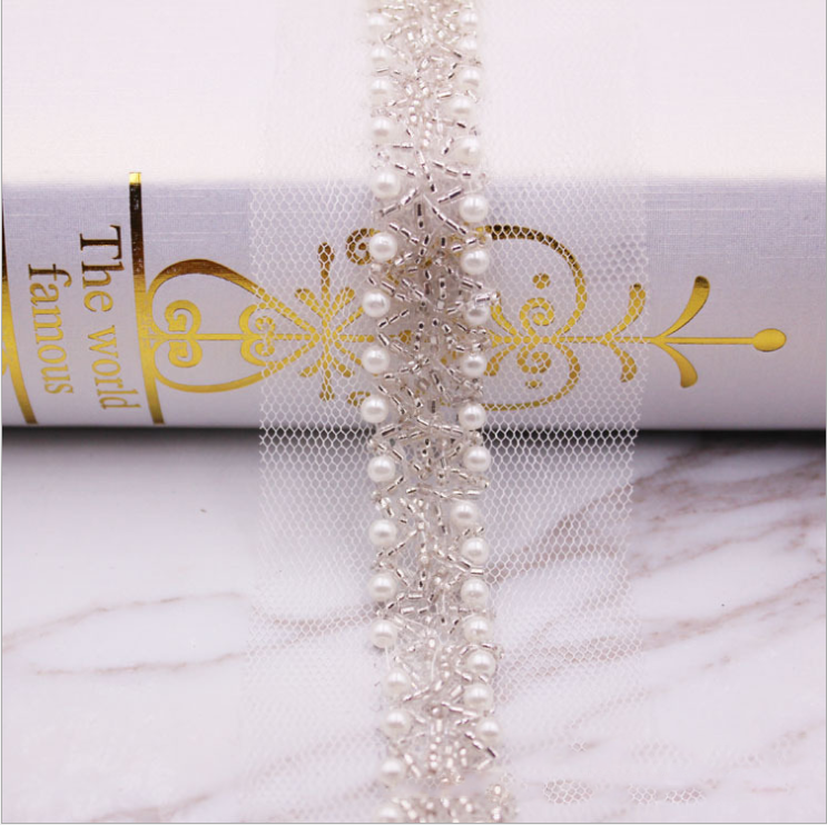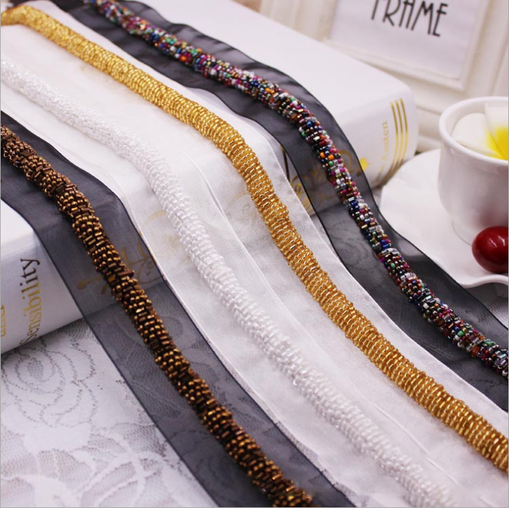 Spot 3cm hand hook tube bead lace DIY handmade beaded webbing fashion clothing collar accessories lace