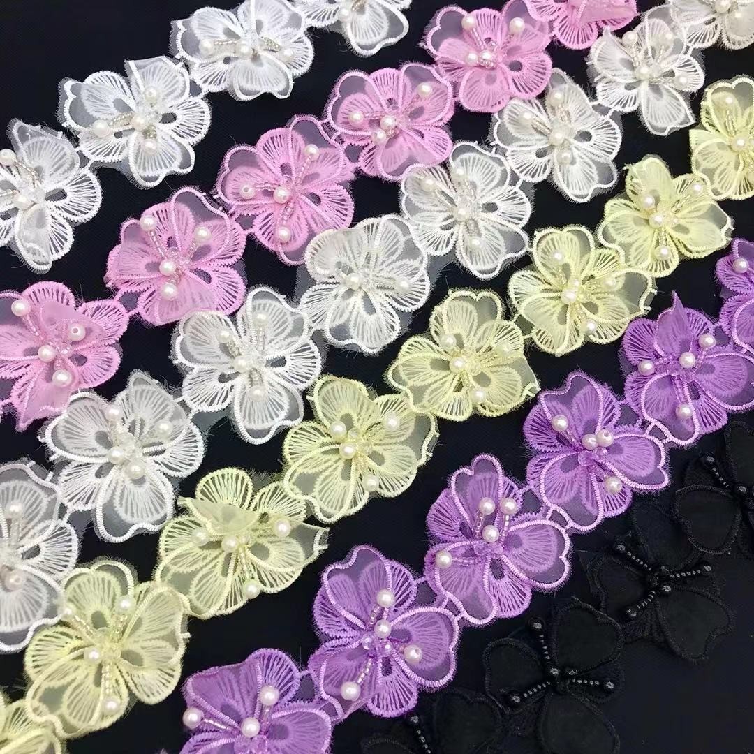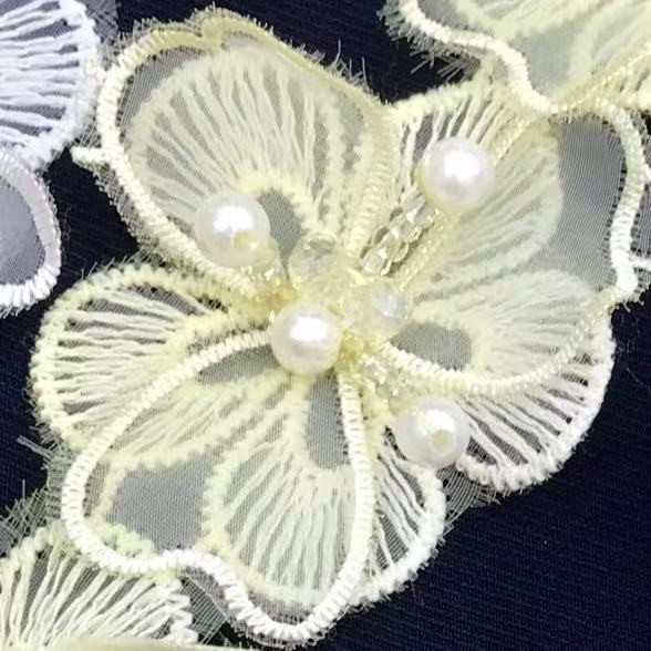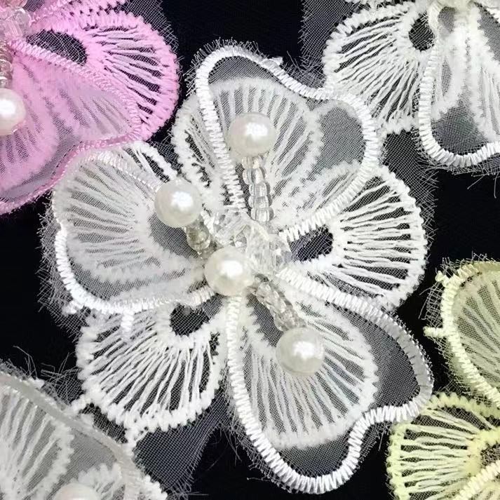 Double-layer lace three-dimensional beaded flower appliqué barcode