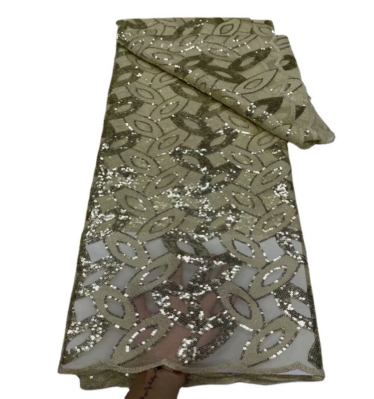 New European and American heavy industry bead tube sequin embroidery fabric African two-color beaded dress wedding embroidery fabric