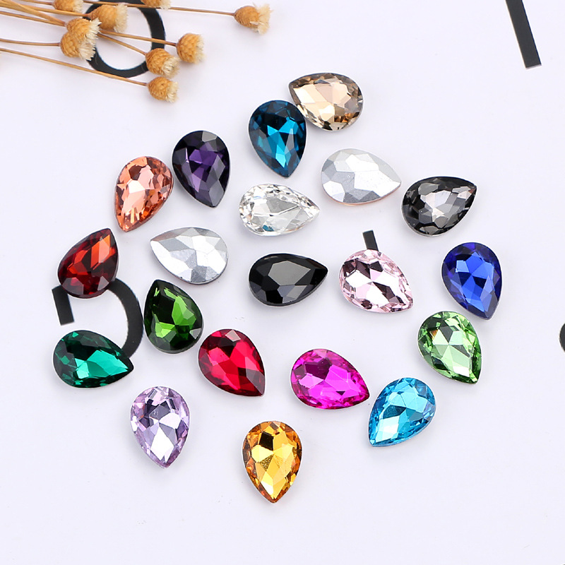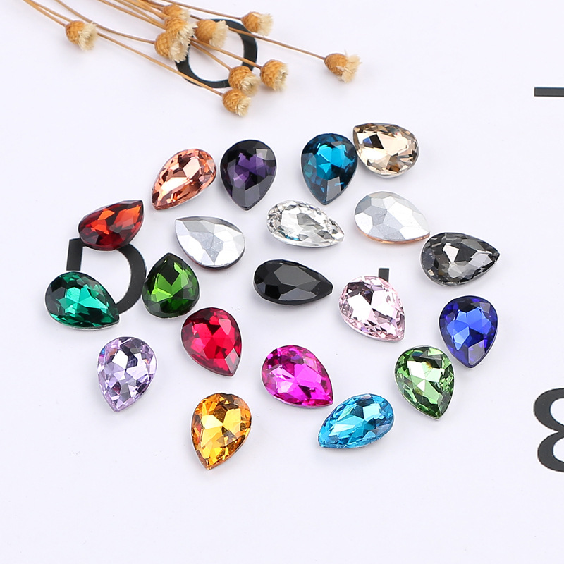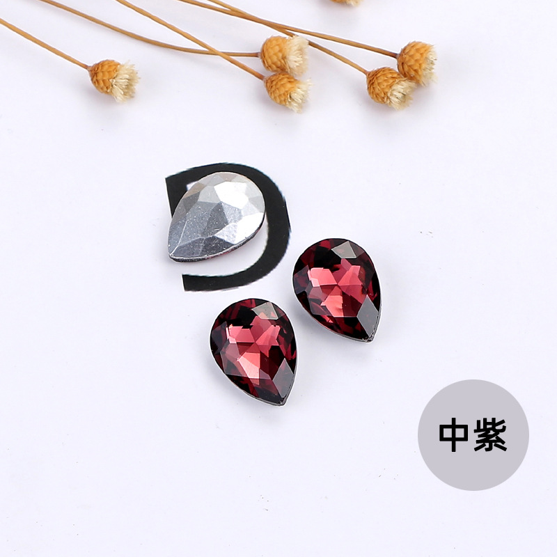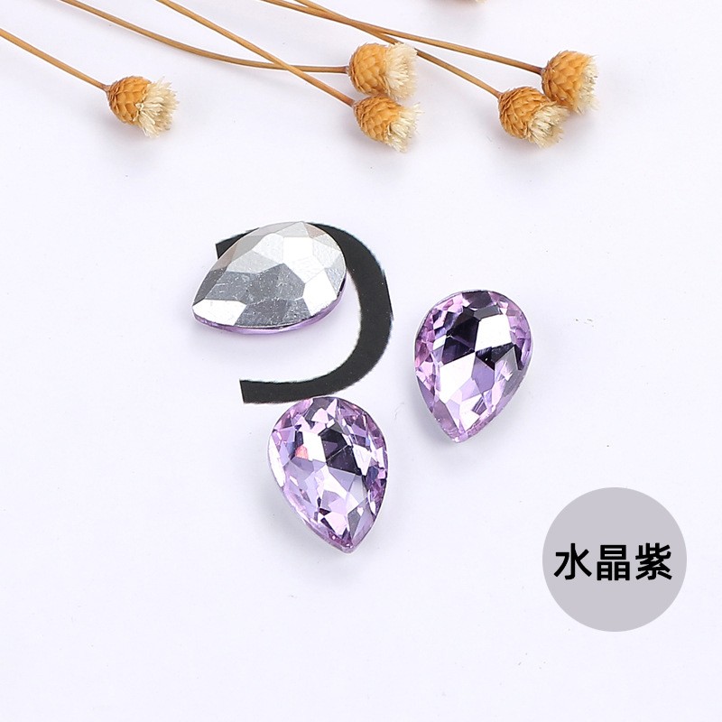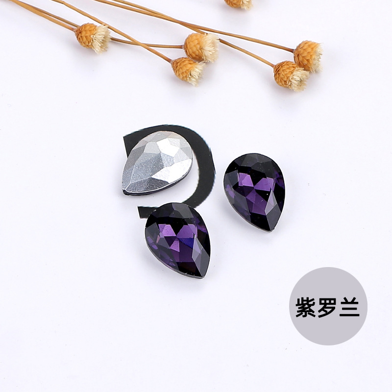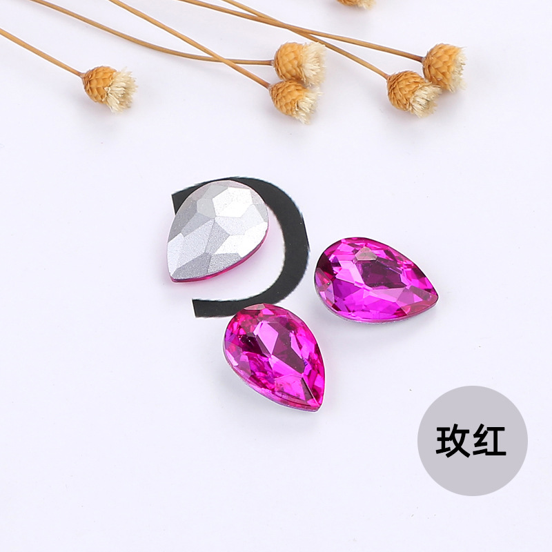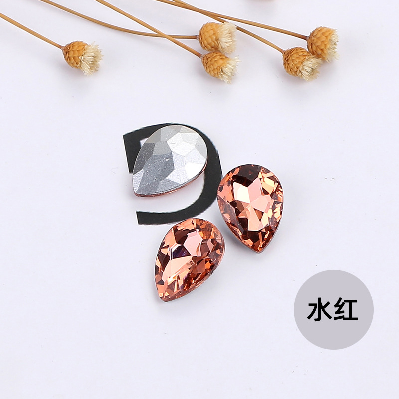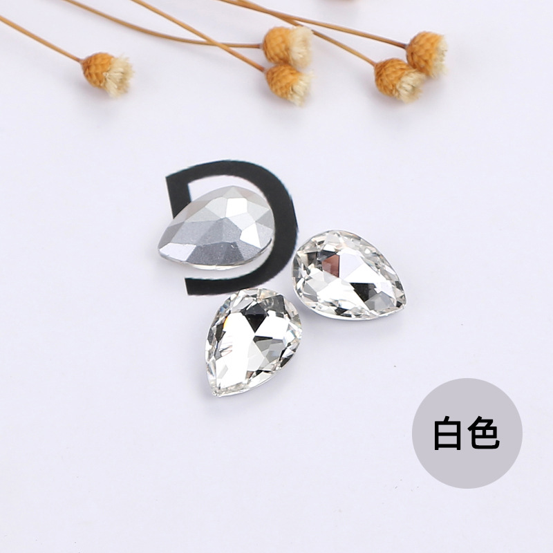 Water drop-shaped colored diamonds, transparent glass drills, special-shaped drills, silver-plated pointed bottoms, mobile phone DIY stickers, jewelry accessories