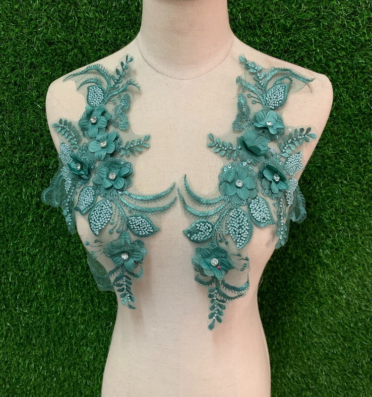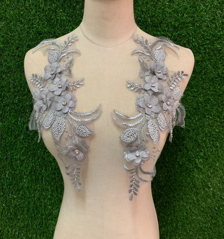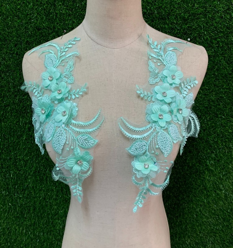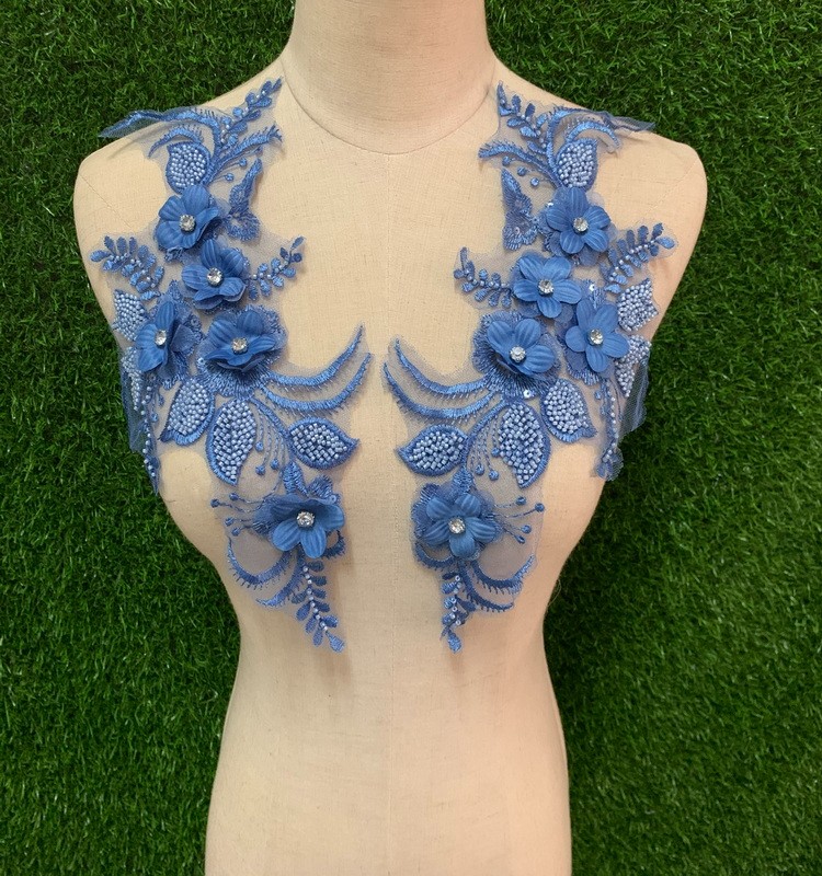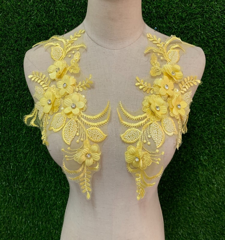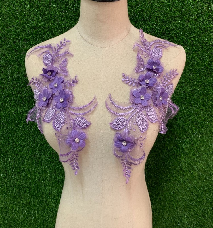 Exquisite and beautiful car bone lace lace, water soluble lace flower cloth stickers, lace mesh, tulle flowers, Beaded embroidered applique,Three-dimensional embroidery small flower tube bead pair flower