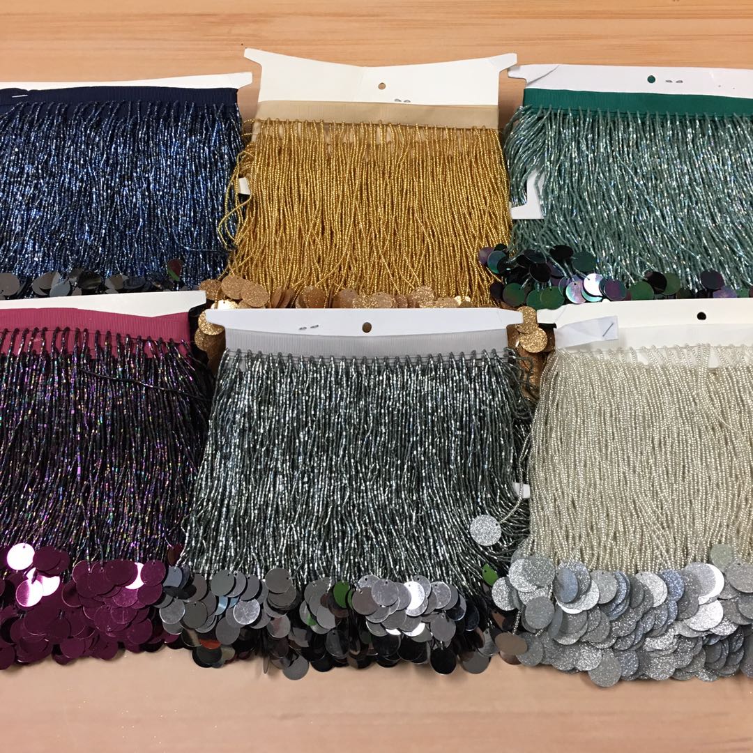 Heavy industry handmade sequin tassel fashion tube bead tassel wedding dress dance dress decorative tassel