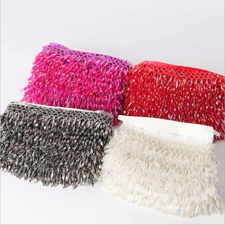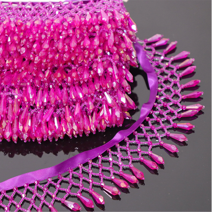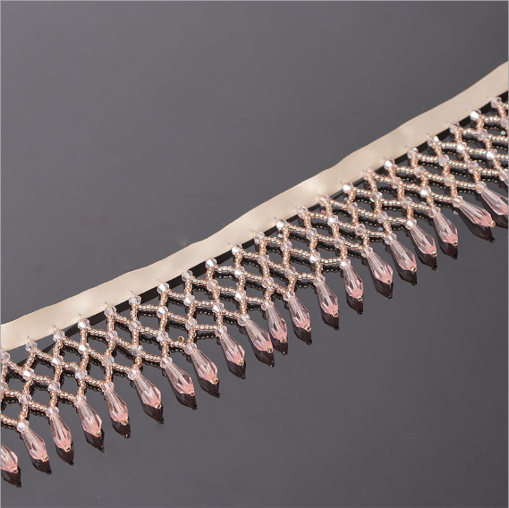 Mesh hanging beads glass crystal tassel hanging ear hand beaded webbing bar code lace