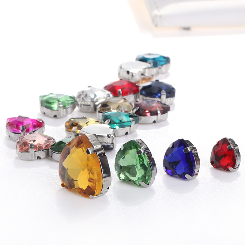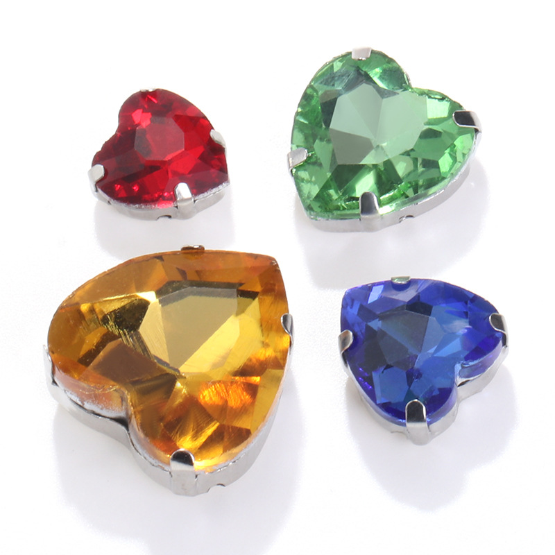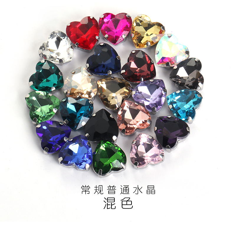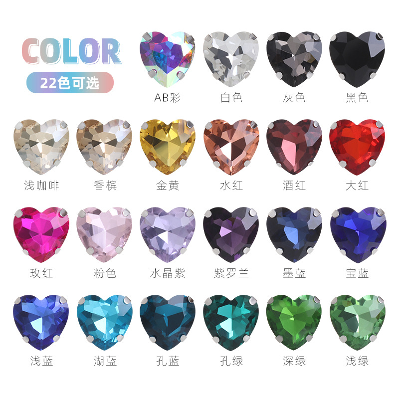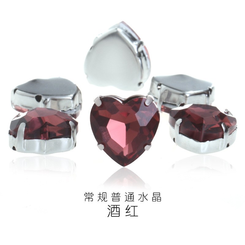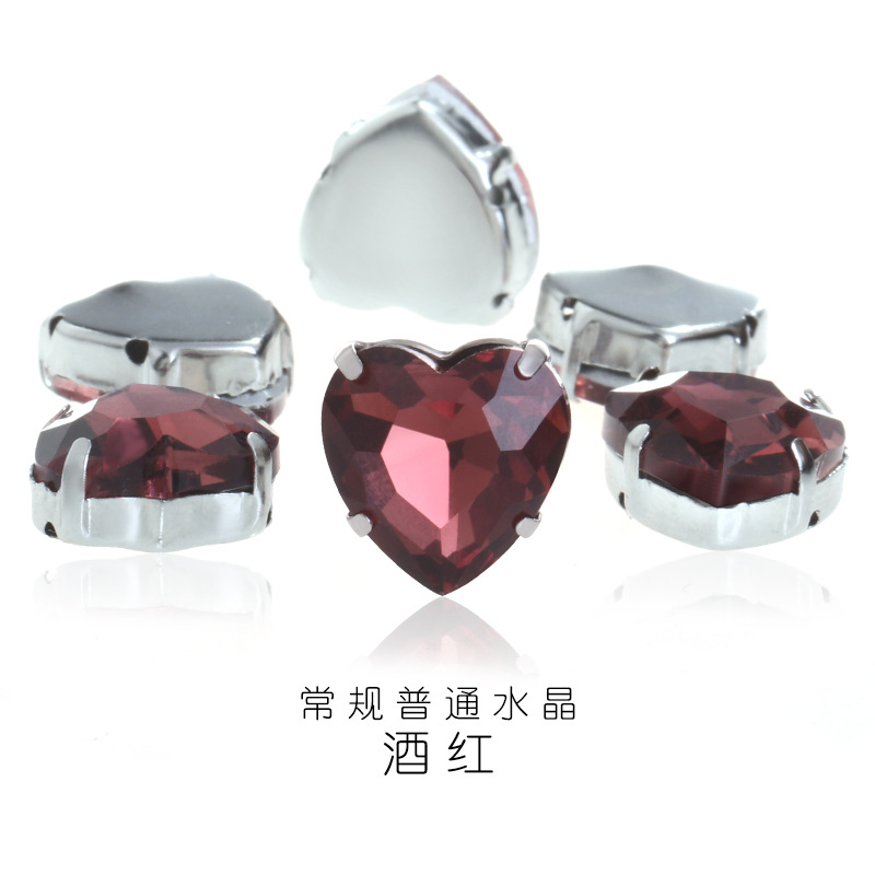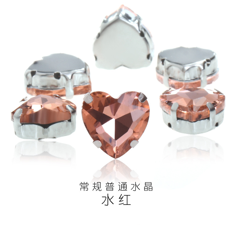Hot selling in Europe, America and Africa, peach heart glass claw drill heart drill wedding hat hair accessories diy jewelry accessories with hole hand sewing drill