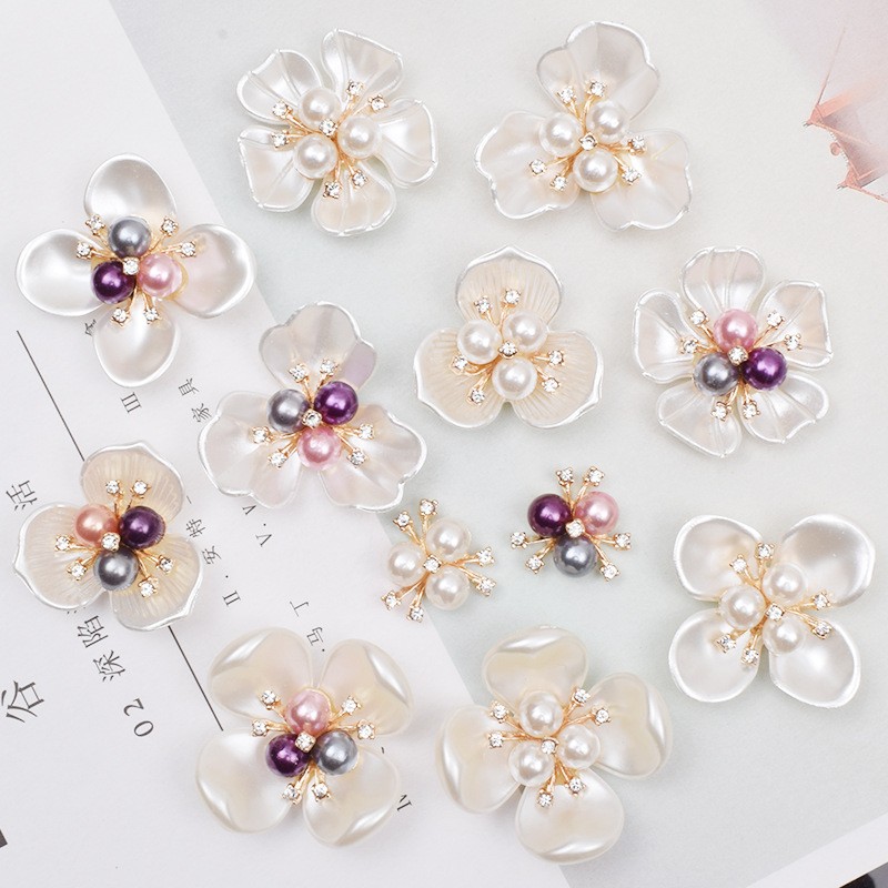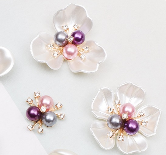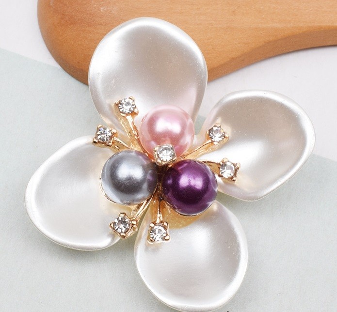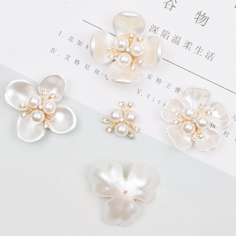 New imitation shell flower three pearls hair accessories flower heart bride hand holding flower fan antique DIY jewelry accessories wedding brooch bride fan wrist flower