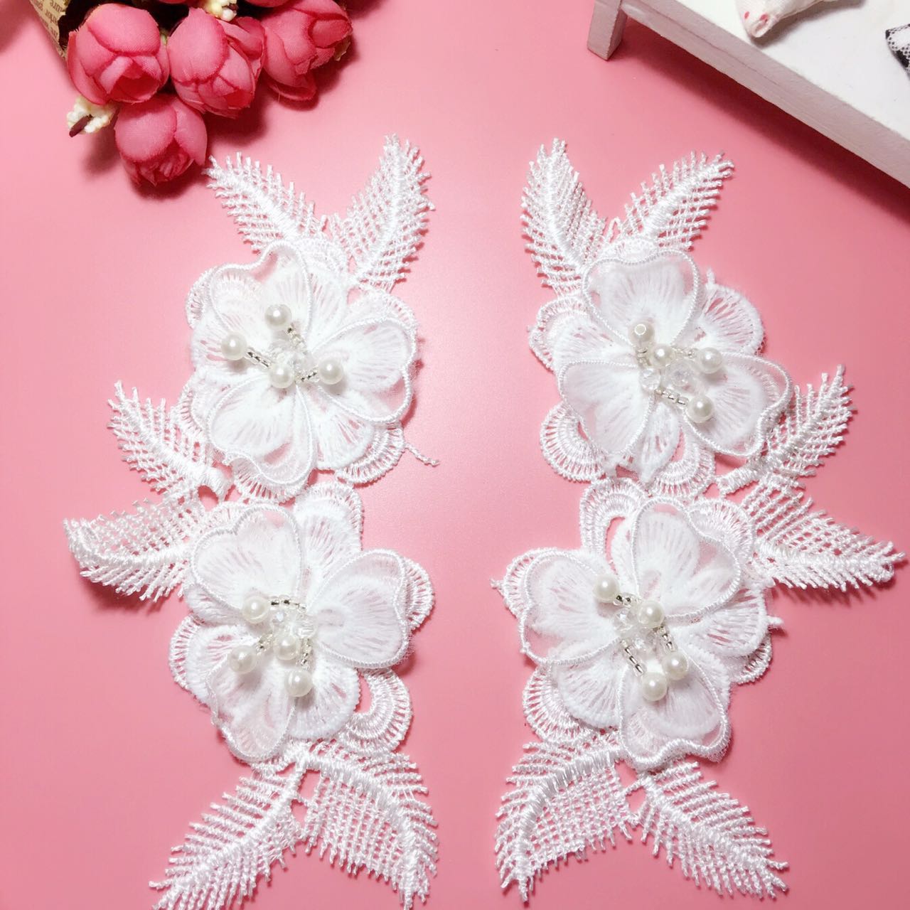 New water-soluble pair of flowers with three-dimensional beaded flowers