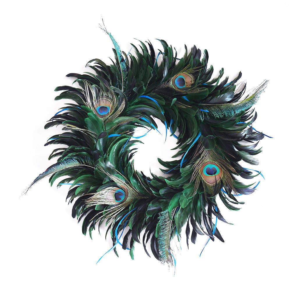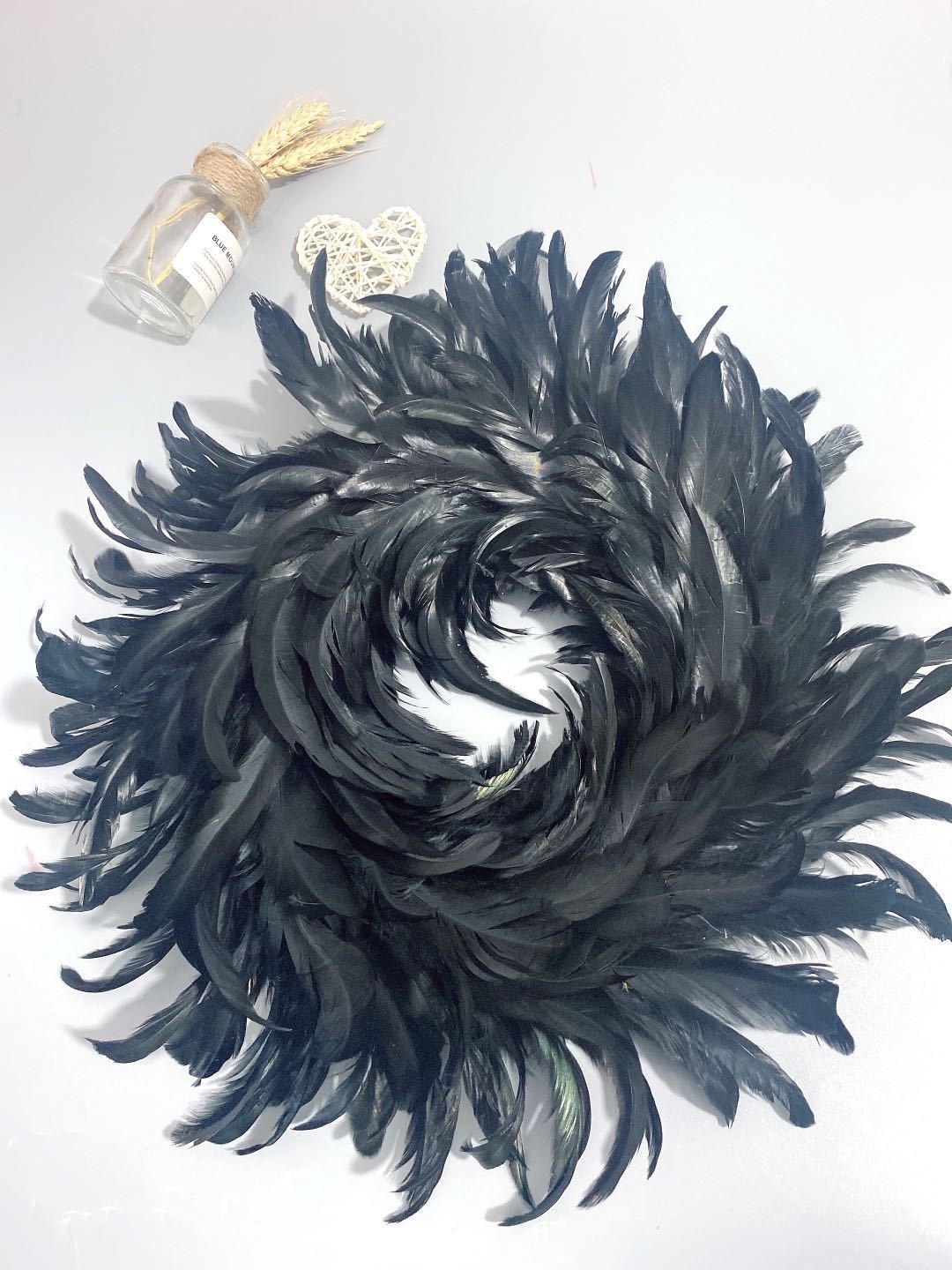 Halloween Black Feather Ring Holiday Ornament Garland Front Door Pendant Black Door Hanging