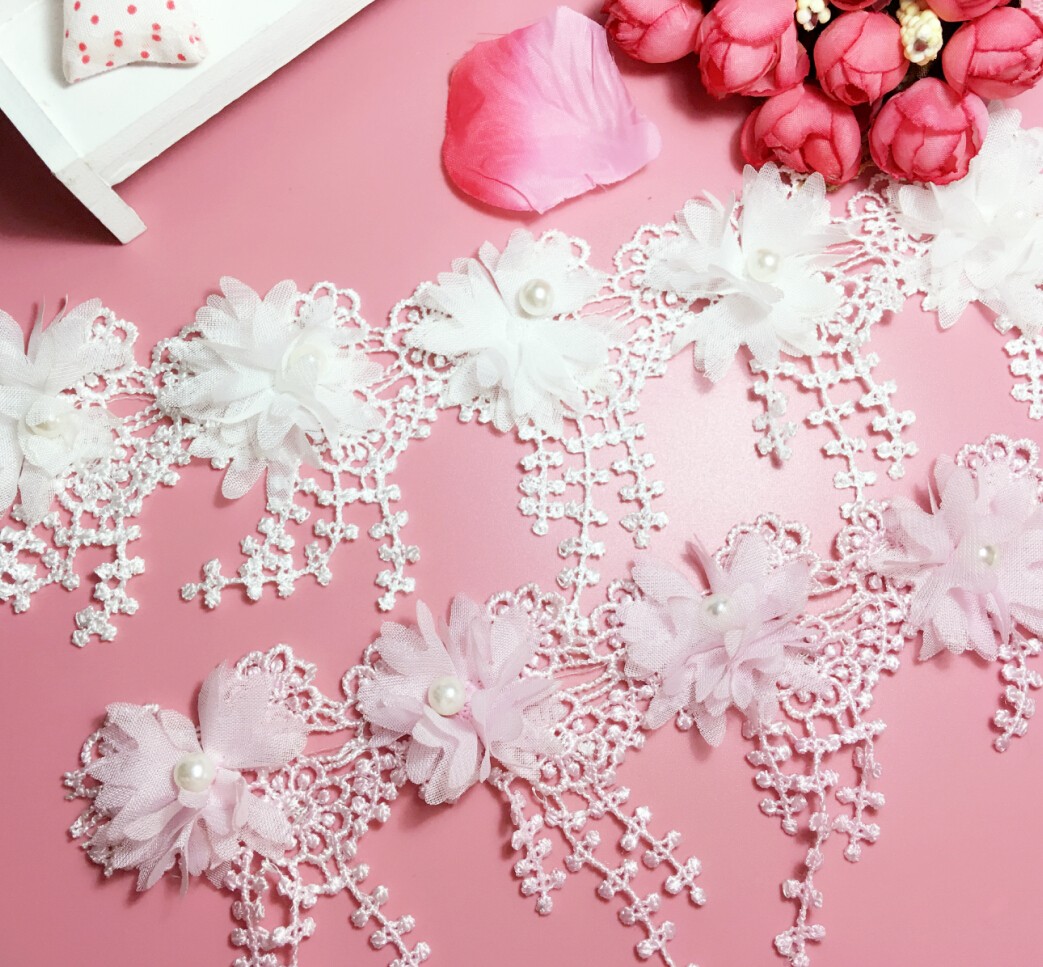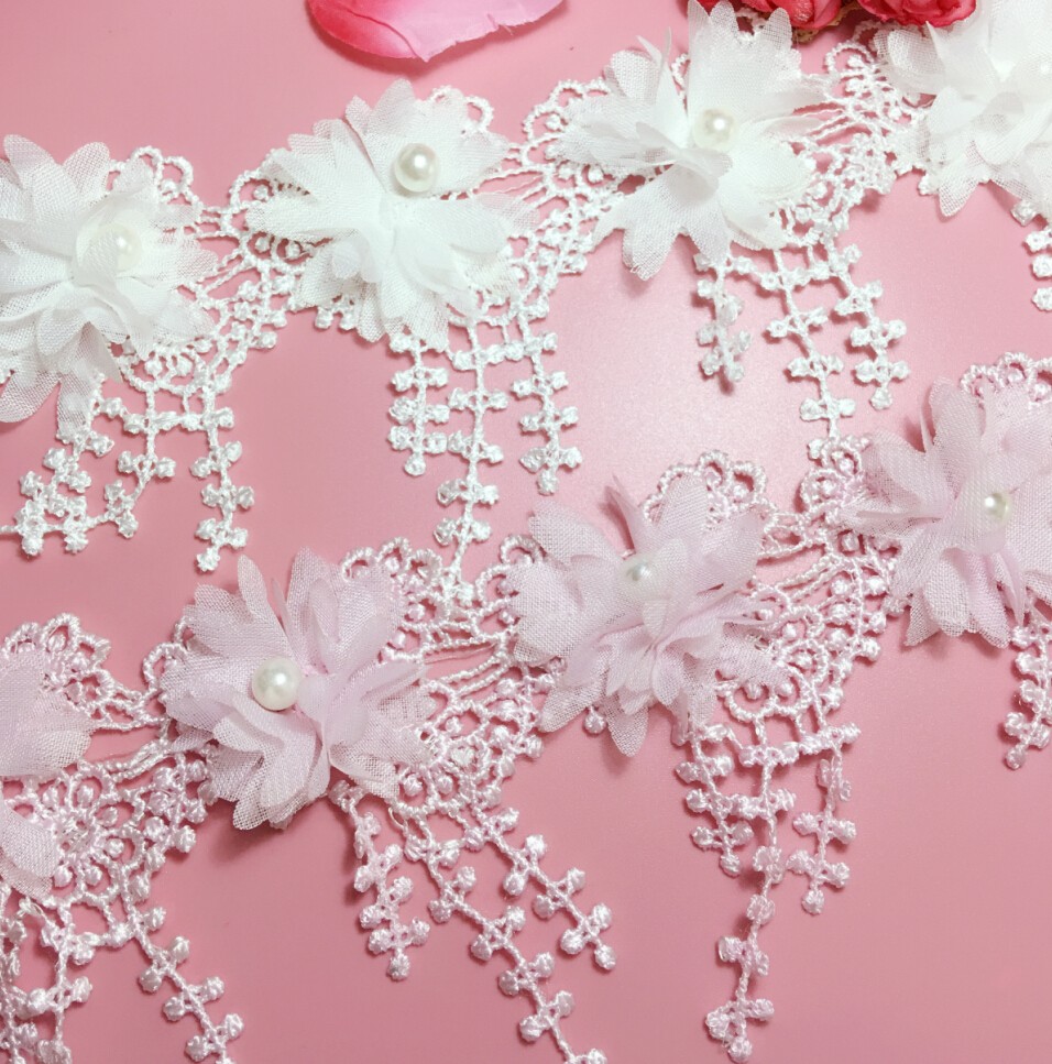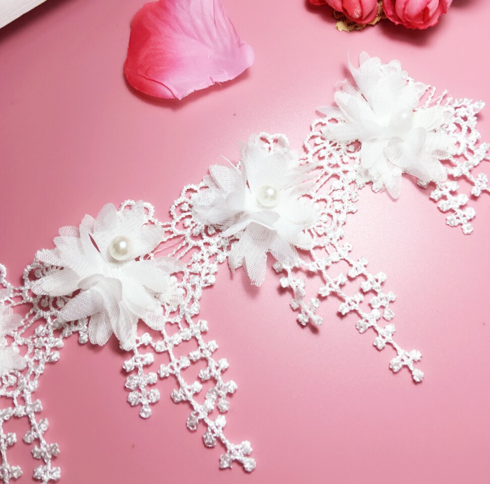 Polyester light water soluble bar code chiffon burning flower nail bead flower corn beard tassel lace