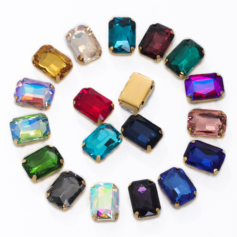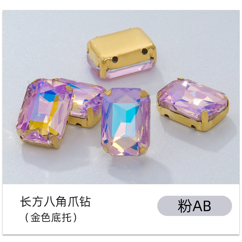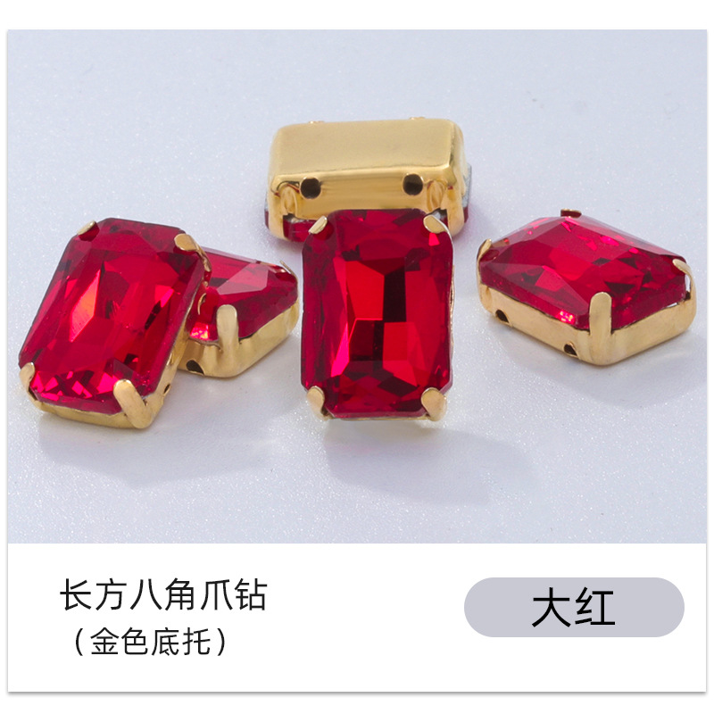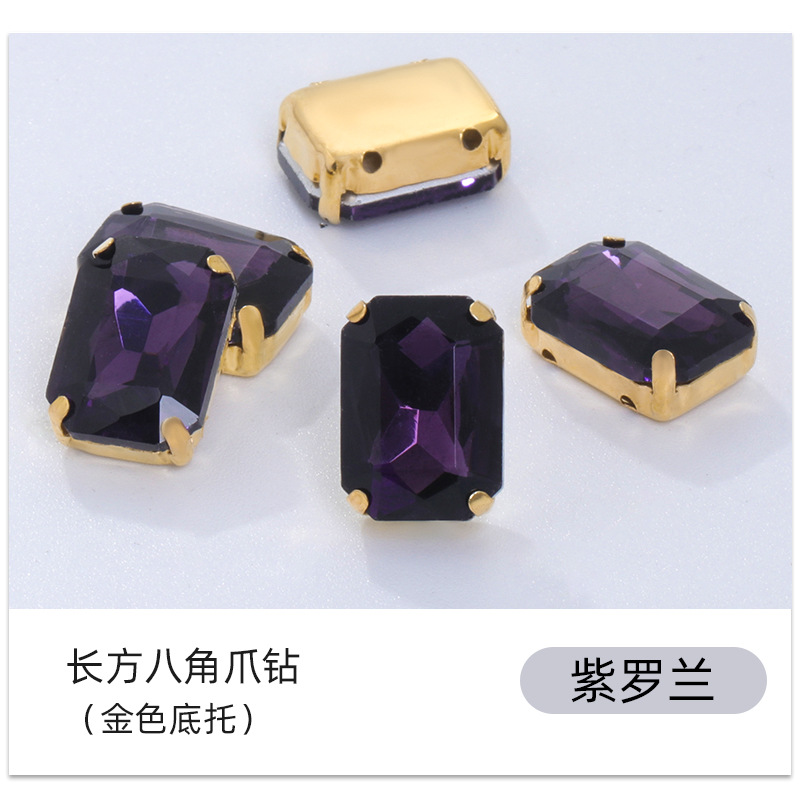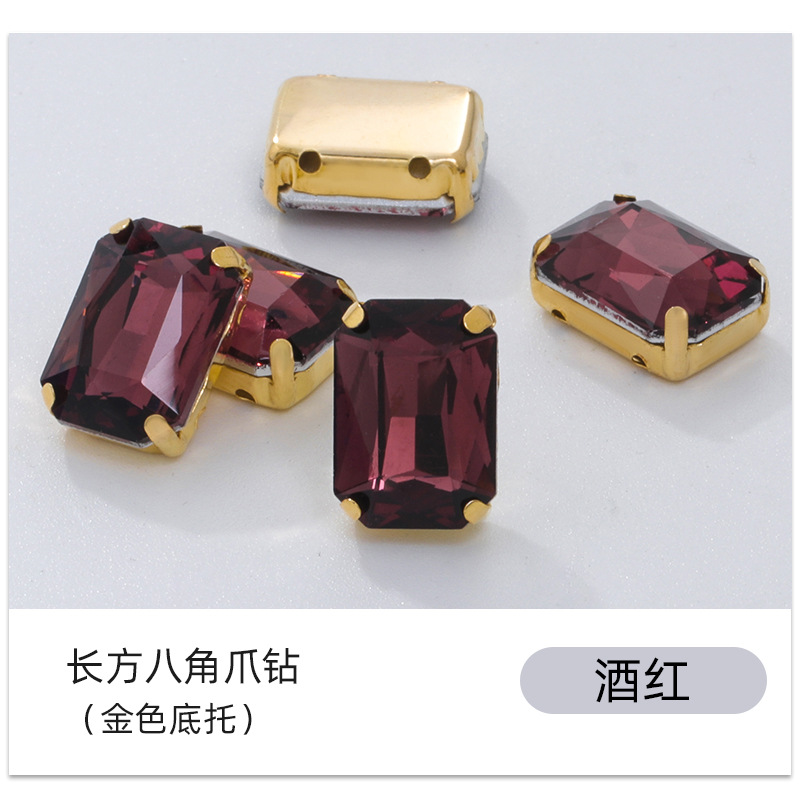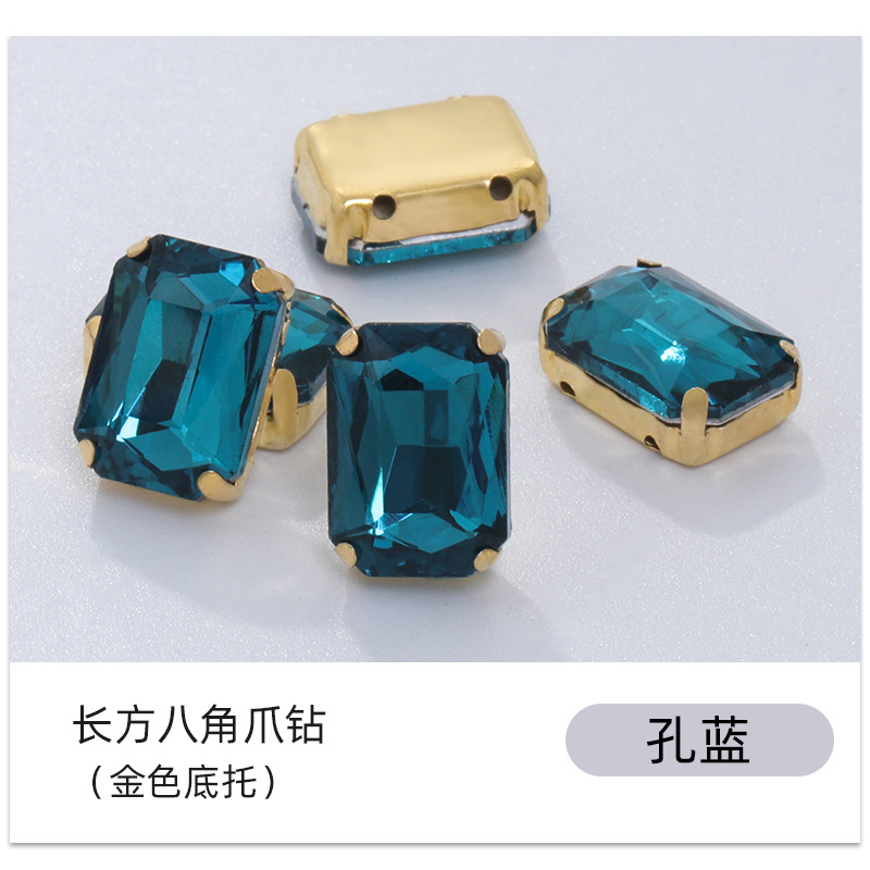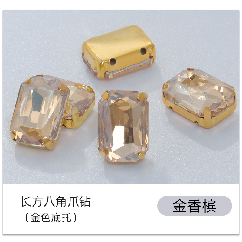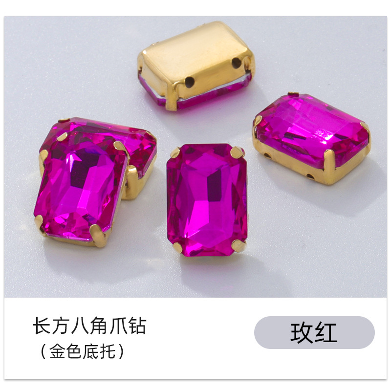 Hot selling in Europe, America and Africa, rectangular octagonal glass claw drill with hole hand-sewn glass drill diy jewelry clothing accessories accessories