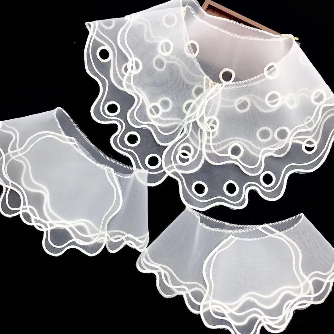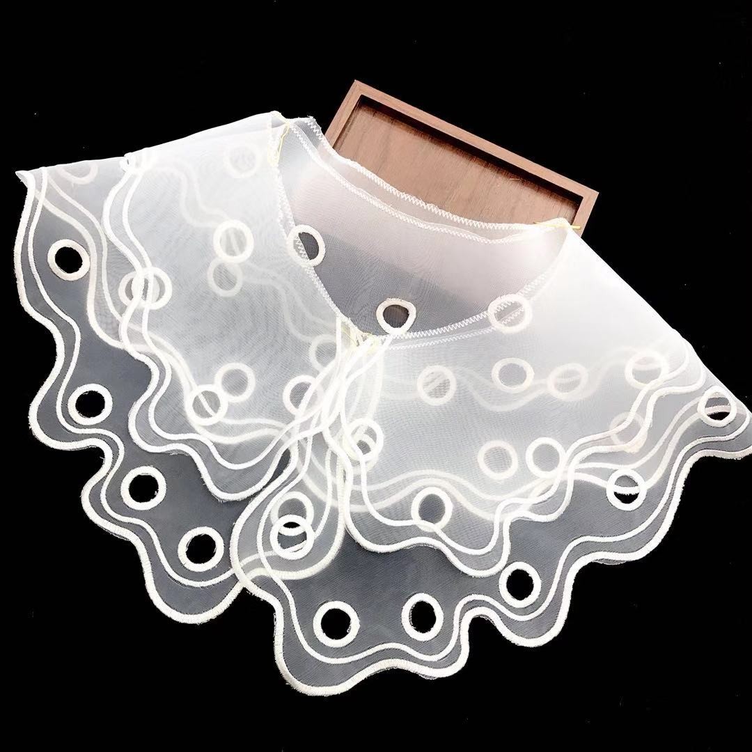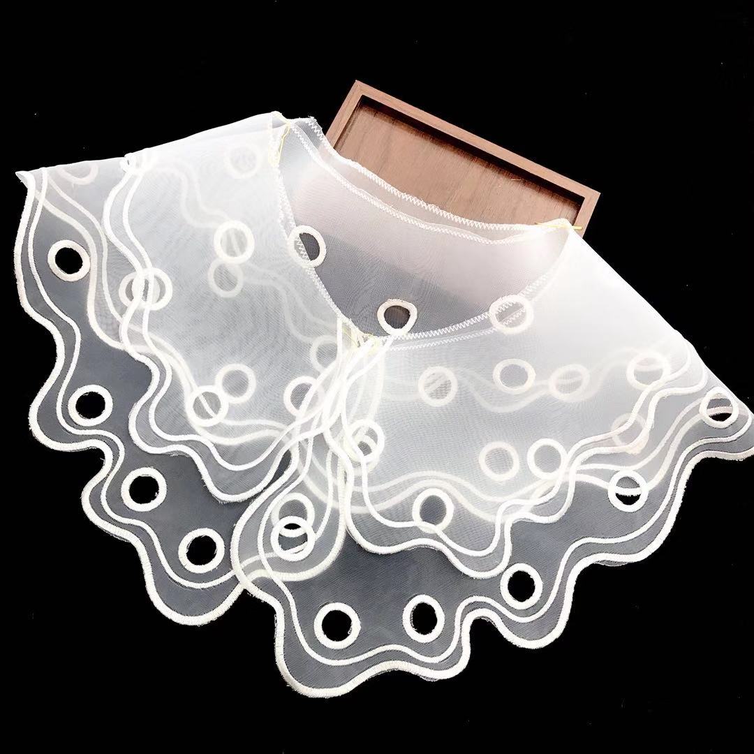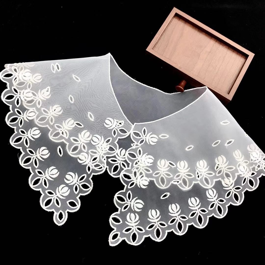 Lace Embroidered Double Collar Cuff Women's Korean Dress Chiffon Shirt Princess Fan Collar Flower