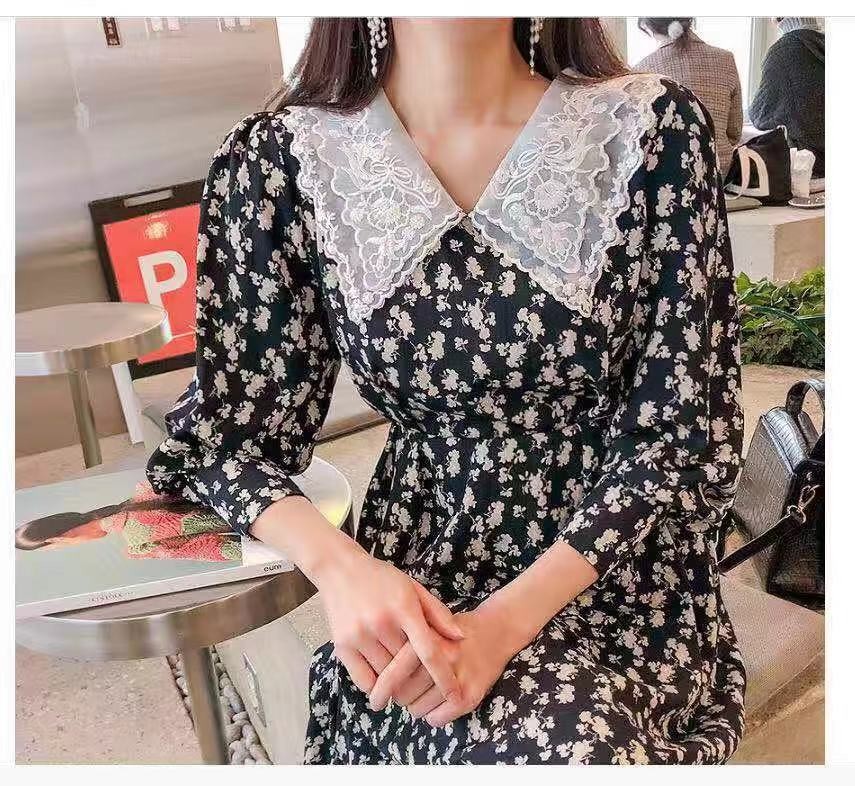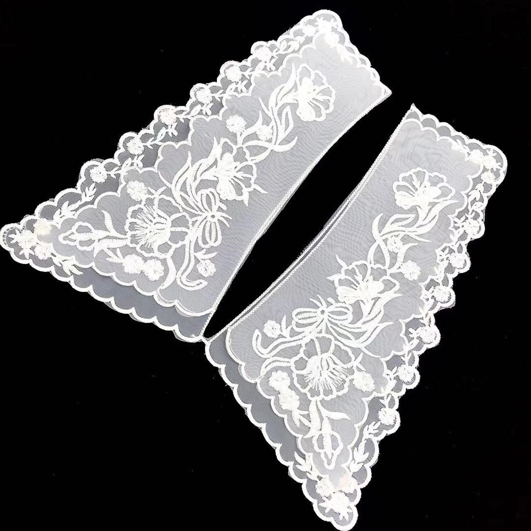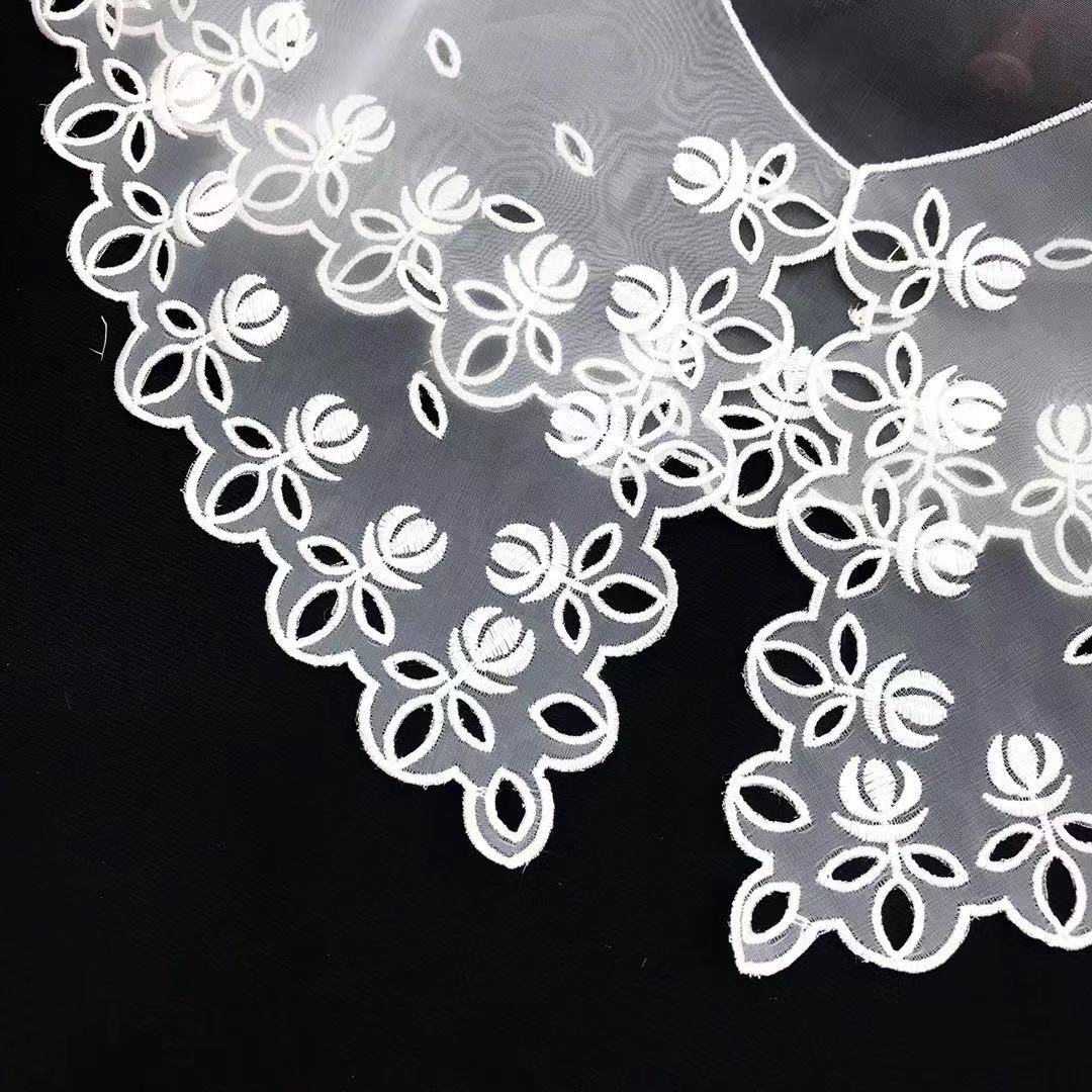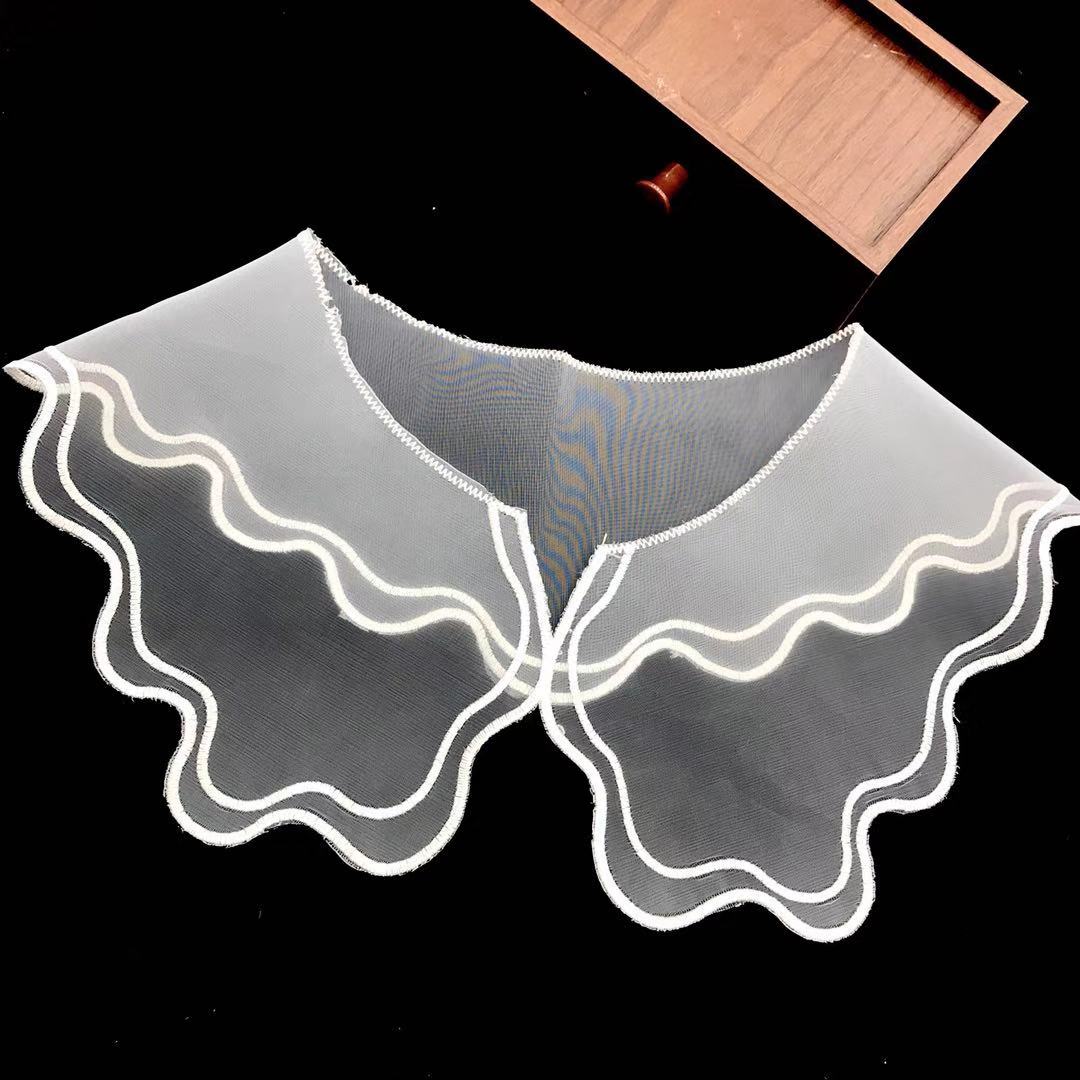 Lace Embroidered Double Collar Cuff Women's Korean Dress Chiffon Shirt Princess Fan Collar Flower