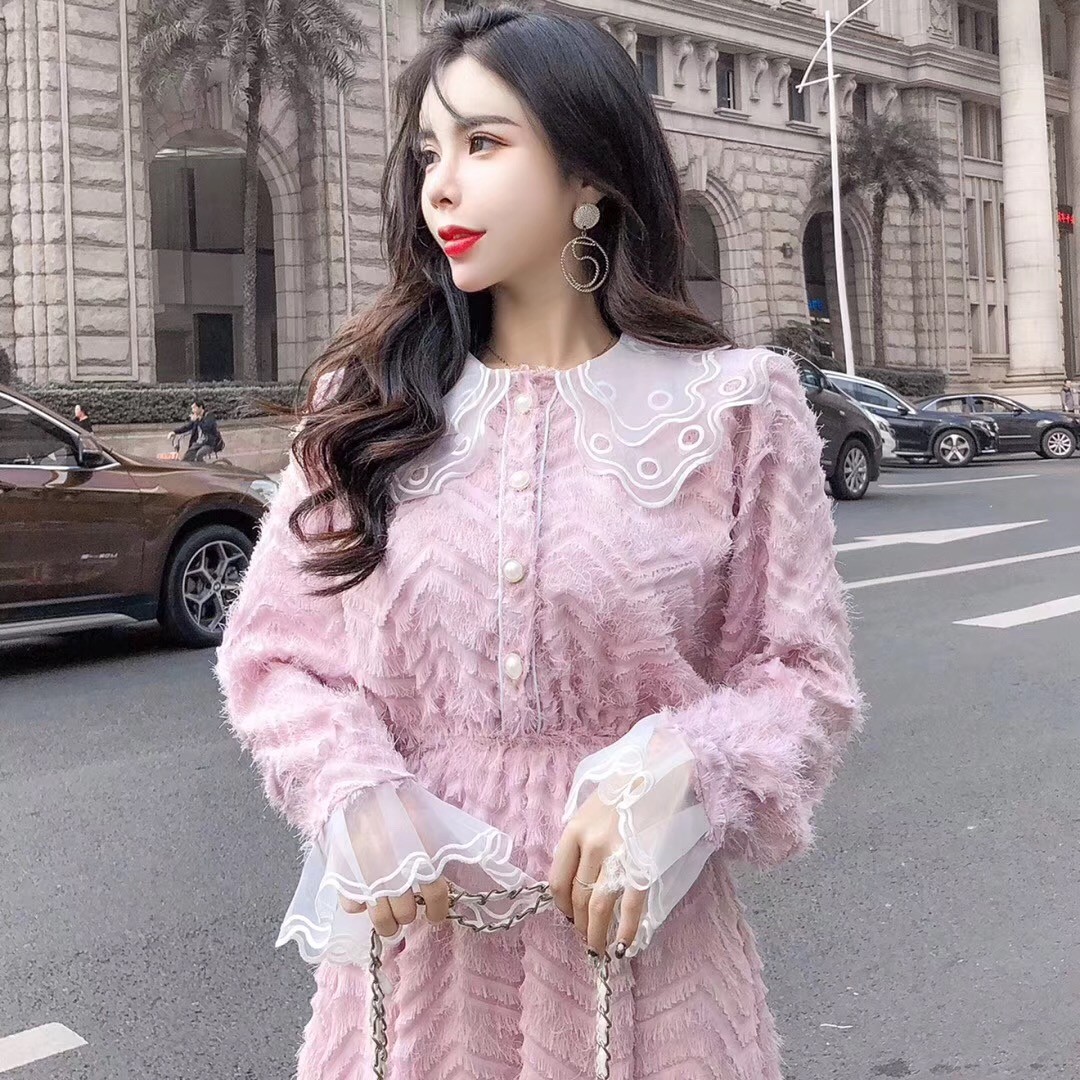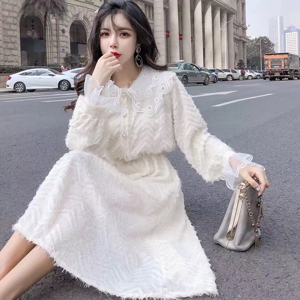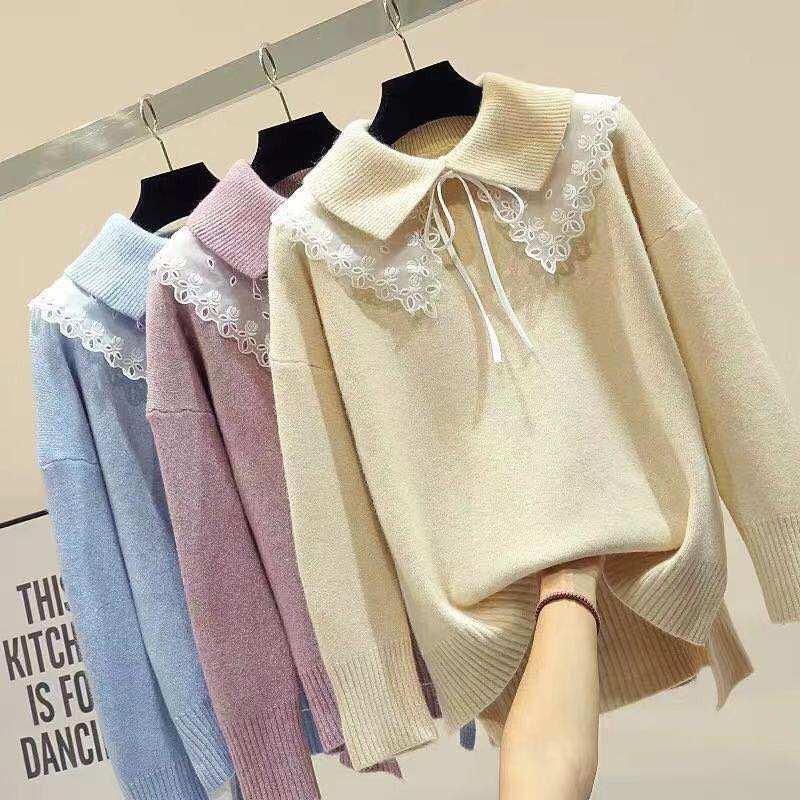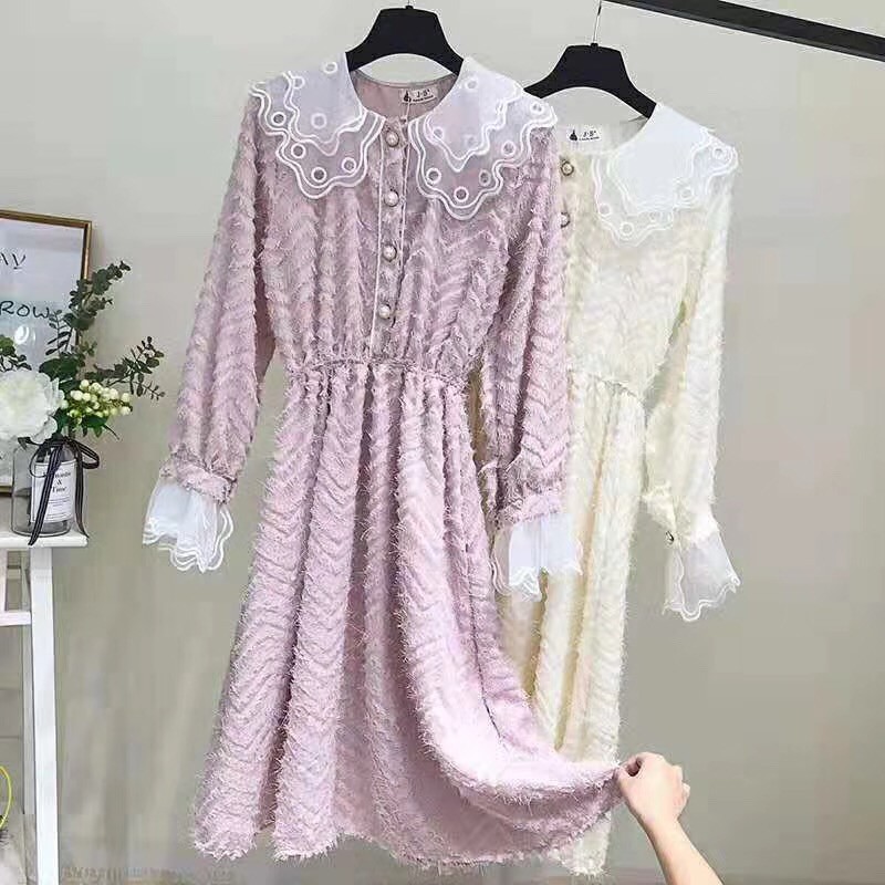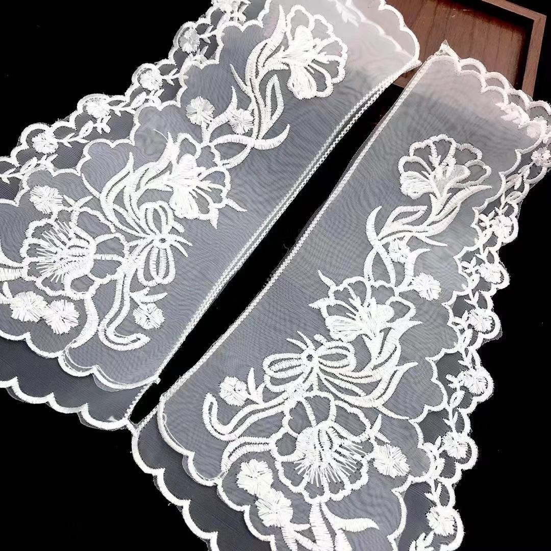 Lace Embroidered Double Collar Cuff Women's Korean Dress Chiffon Shirt Princess Fan Collar Flower