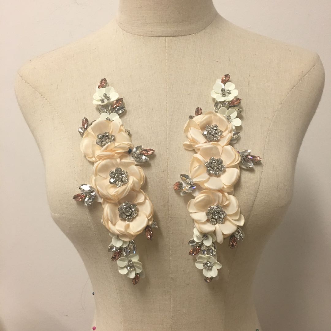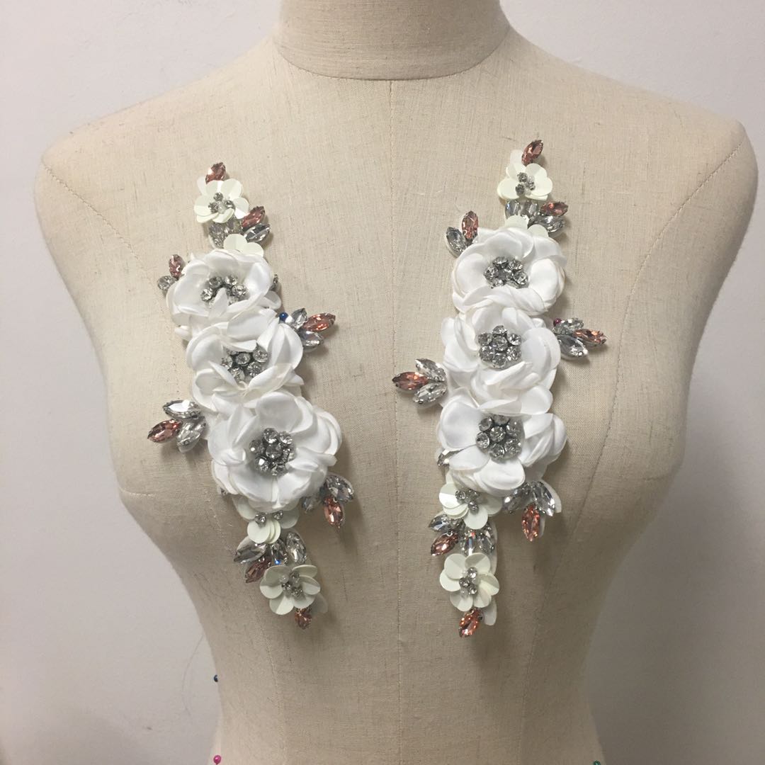 Exquisite and beautiful car bone lace lace, water soluble lace flower cloth stickers, lace mesh, tulle flowers, Hand-sewn beaded rhinestone embroidery Machine embroidery knitted bridal clothing dress skirt DIY accessories