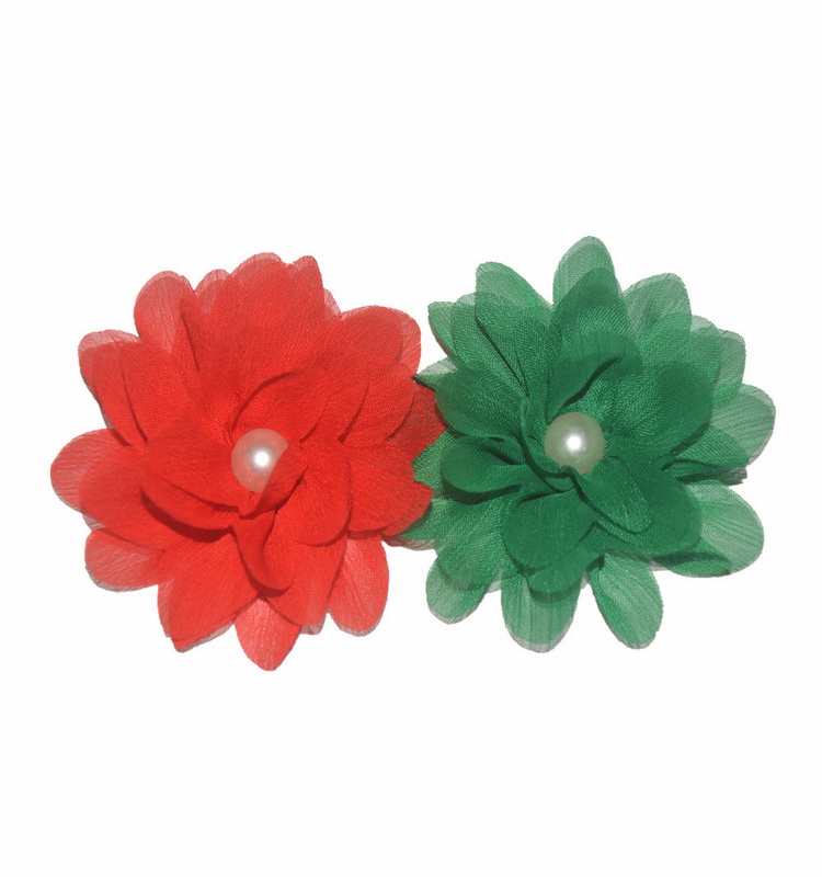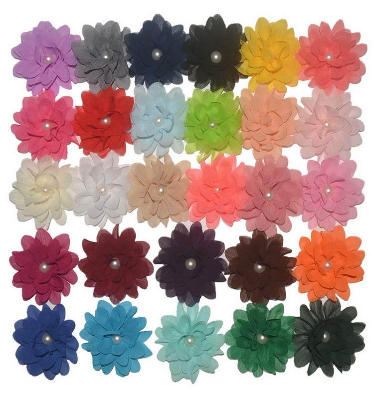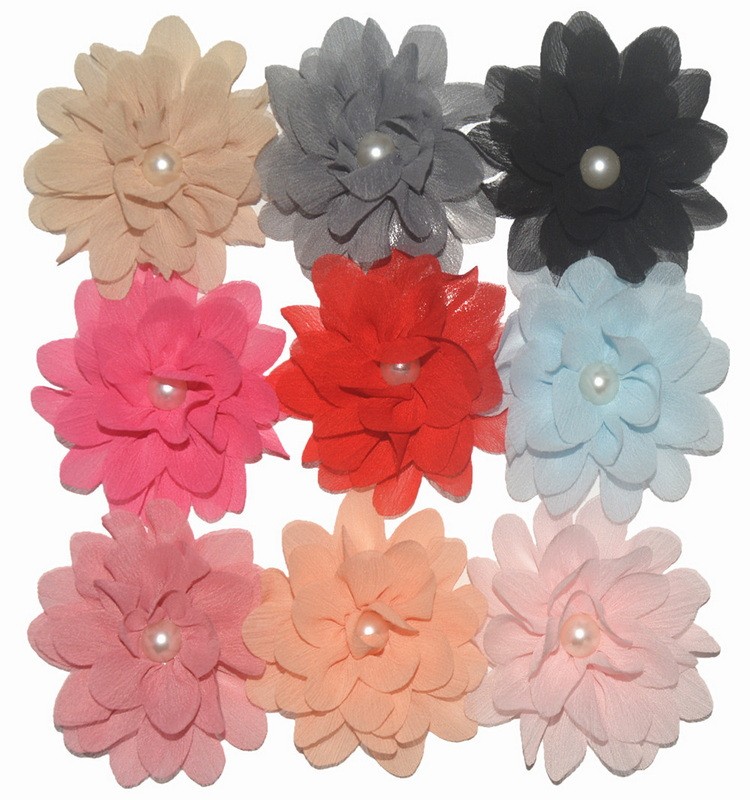 New high quality 7cm pleated chiffon pearl head flower can be matched with clothing hat shoes flower 28 colors in stock